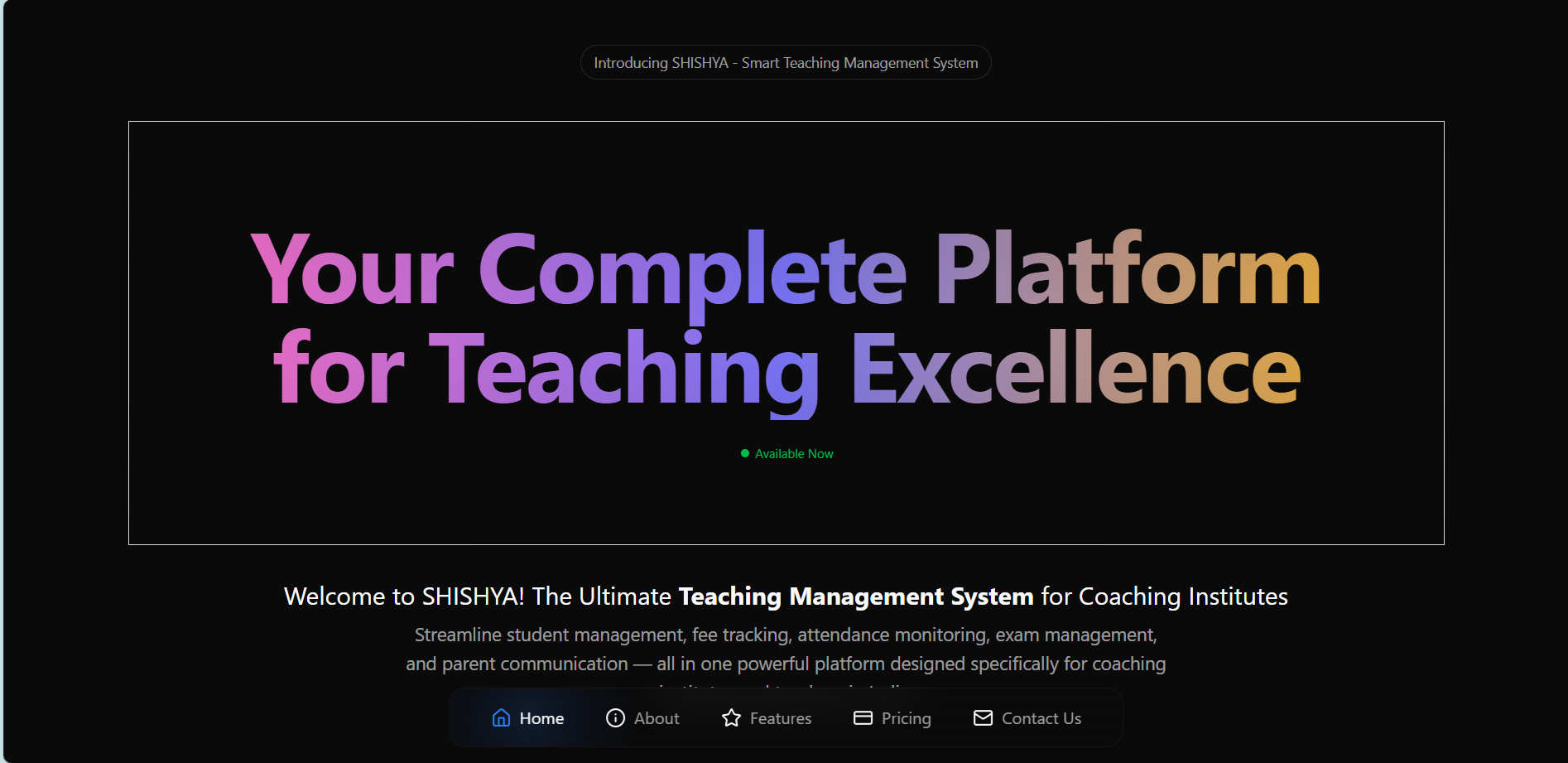 SHISHYA is a modern ERP platform built for teachers, coaching institutes, and tuition classes.